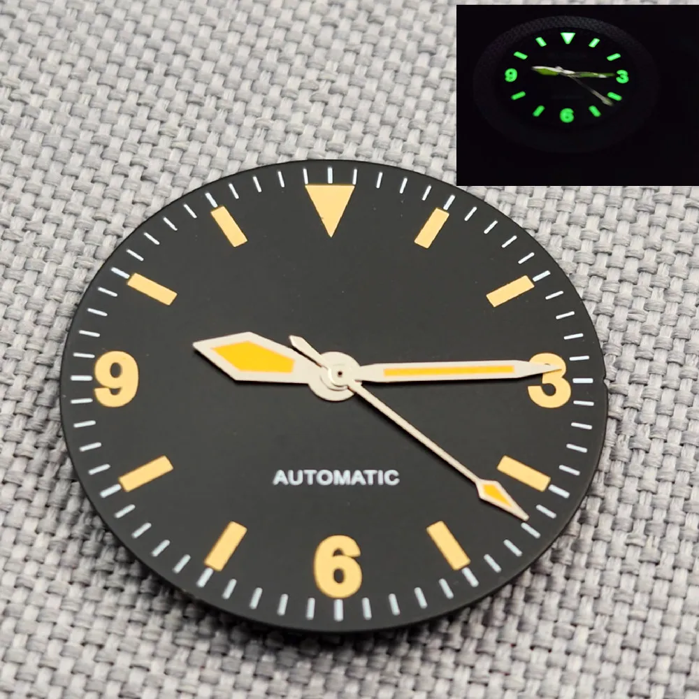 29mm Retro Explorer Dial 369 Luminous Dial 369 yellow marker Suitable For Eta2824 2836 Miyota82 Series Mingzhu Dg2813 Nh35 Nh36 Automatic Movement