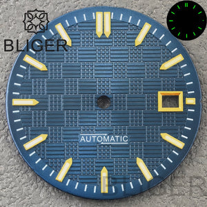 28.5MM Double bar Watch dial blue and green luminous light for NH35 NH36 NH35 dial, watch accessories NH35 customization