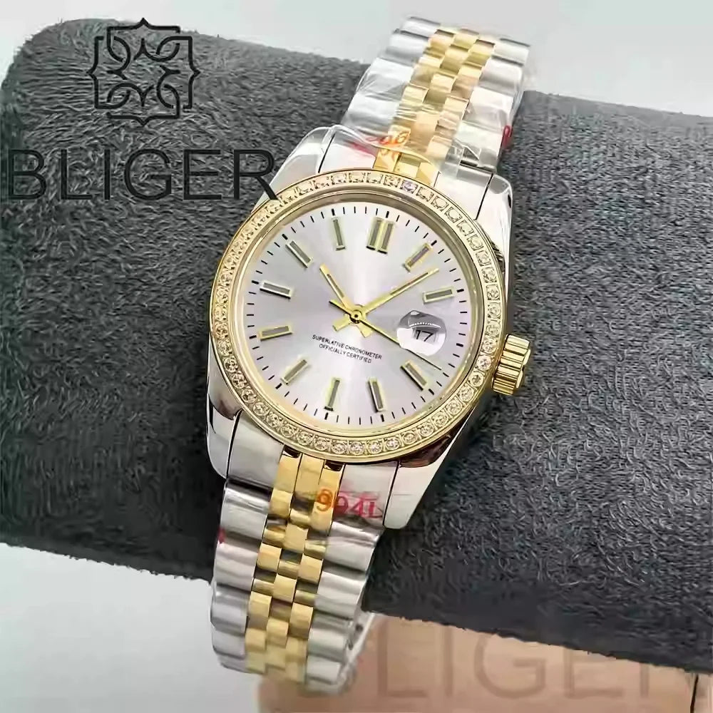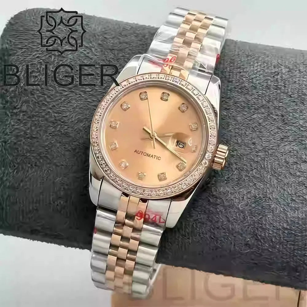31mm Women's Watch BLIGER Two Tone Gold Case Sapphire Japan NH05 Movement 10ATM