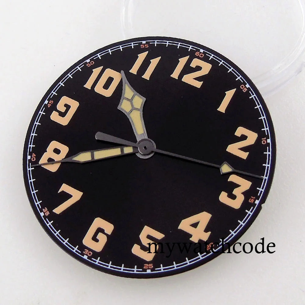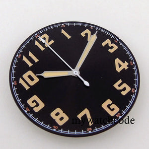 33.5mm Black Watch Dial Arabic Numerals Fit NH 35A NH 36A ET A2824 PT 5000 Automatic Movement Orange/White Hands Green Luminous