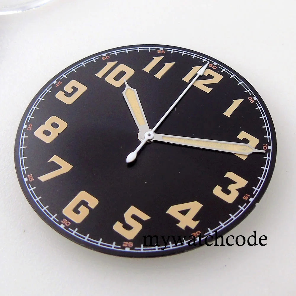 33.5mm Black Watch Dial Arabic Numerals Fit NH35A NH36A ETA2824 PT5000 Automatic Movement Orange/White Hands Green Luminous