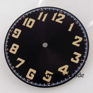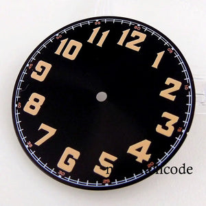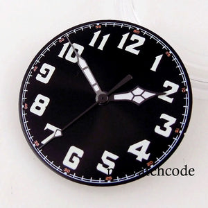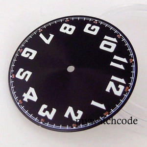 33.5mm Black Watch Dial Arabic Numerals Fit NH 35A NH 36A ET A2824 PT 5000 Automatic Movement Orange/White Hands Green Luminous