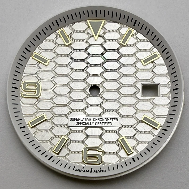 33.8mm NH35 Dial S Logo Gold Sterile Honeycomb Dial Suitable For NH35/NH36 Automatic Movement Vertical Lines Watch Accessories