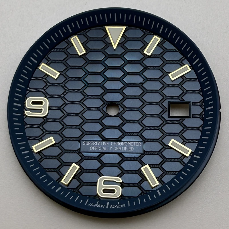 28.5mm Watch Dial Metallic Texture Surface DIY Log Dial BGW9 Blue Green Luminous Watch Faces Watch Accessories for NH35 Movement