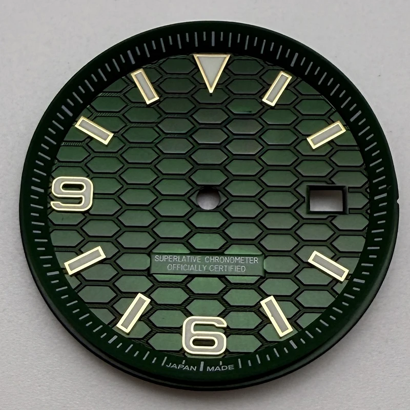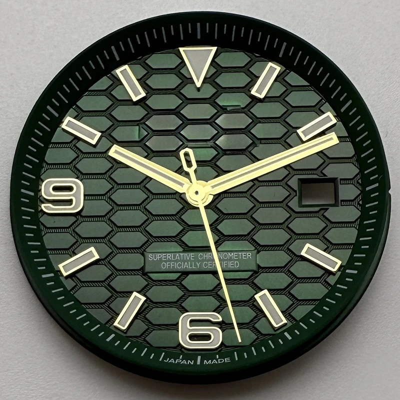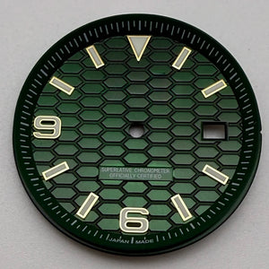 28.5mm Honeycomb Texture Watch Dial Hands Set Green Luminous Faces for NH34 NH38 Movement