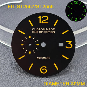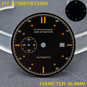 33.9/36.5mm Diameter Green Luminous Sterile Dial for Seagull GMT ST2557/ST2555 Movement with Single Calendar,Custom DIY logo