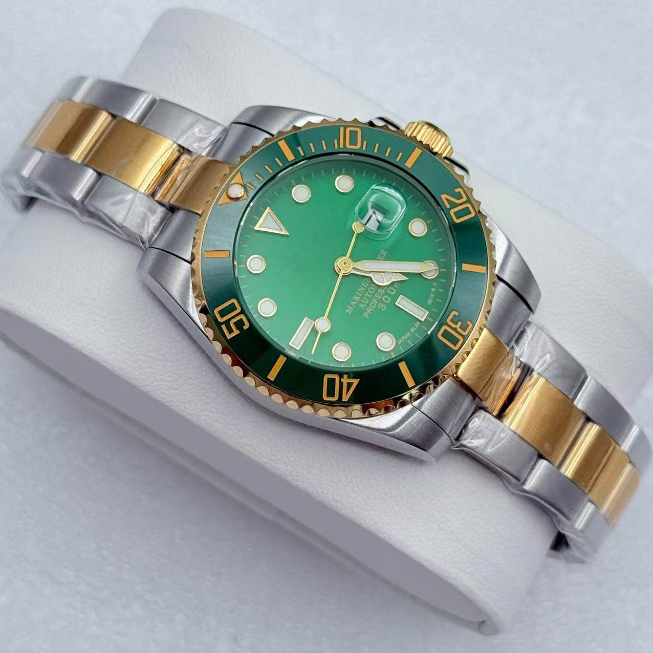 Elegant 33mm lady's dive watch featuring a robust Japan NH05 automatic movement paired with scratch-resistant sapphire crystal. The water-resistant case handles depths to 300M, making it suitable for recreational diving and water sports. Luminous dial markers ensure visibility in low-light conditions. This submariner-style timepiece combines feminine proportions with professional-grade specifications, delivering reliable performance and timeless design for the discerning female diver.