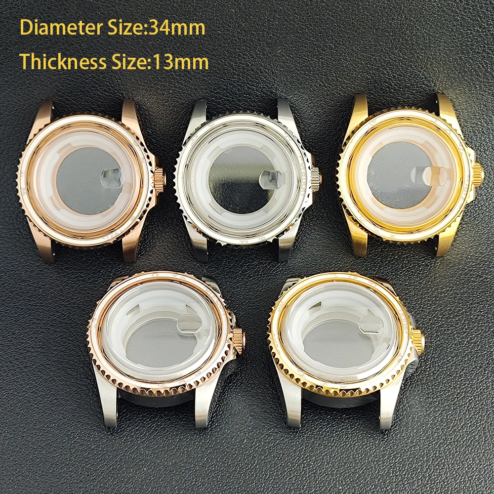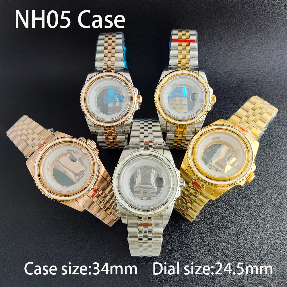 34MM NH05 Watch Case bezel insert ring sapphire glass stainless steel screw in crown women's watch case, suitable for NH05 NH06 movement