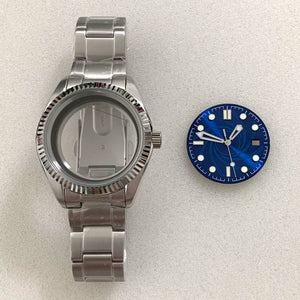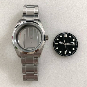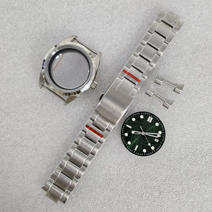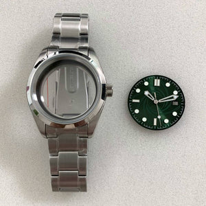 Build your ultimate AirKing or Explorer style watch with this 38mm stainless steel case, crafted from 316L stainless steel and fitted with a sapphire crystal. Designed for NH35, NH34, NH36, NH38, 4R, and 7S movements, this case accommodates a 31mm dial and features green luminous dial and hands. The compact 38mm size offers vintage-inspired proportions for a classic tool watch aesthetic.