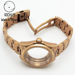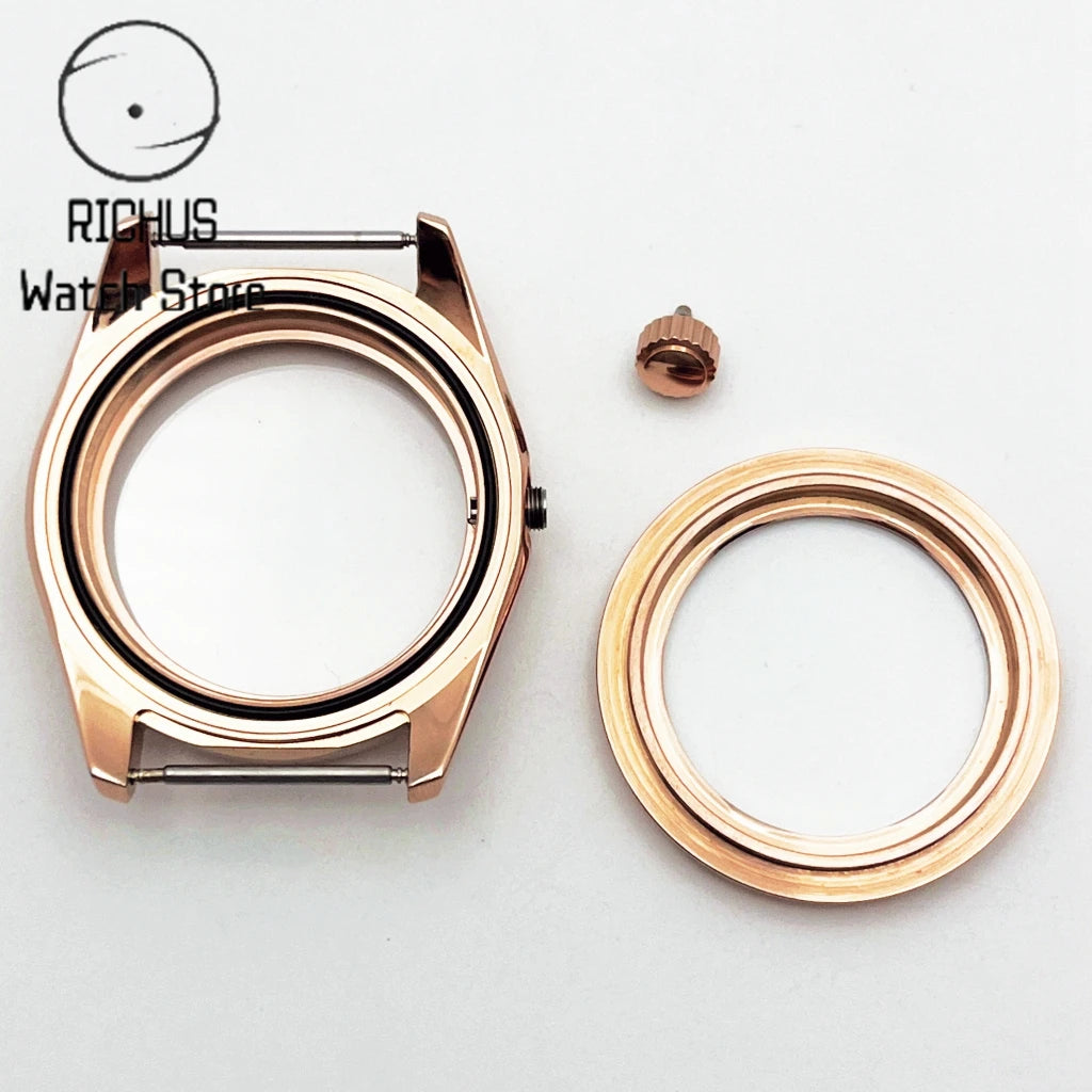 38mm NH35 Case Sapphire Glass RoseGold Watch Case Stainless Steel Strap Fit NH35 NH36 ETA2824 PT5000 Movement Watch Accessories