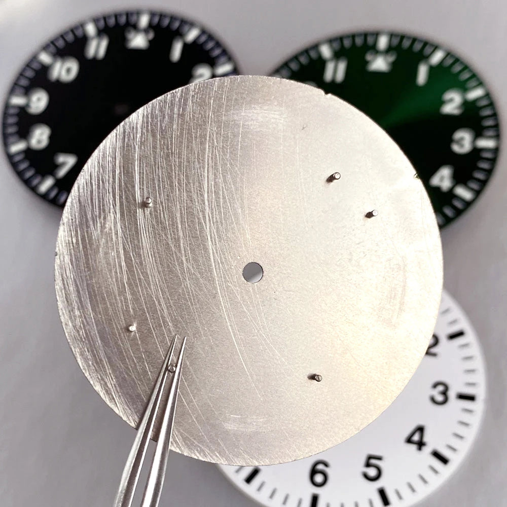 A premium 38mm watch dial and hand set engineered for serious horologers and custom watch builders. This versatile component features a striking sunburst finish available in blue, green, white, or black—each offering distinct visual depth and character. Precision-crafted to seamlessly integrate with popular automatic movements including NH35, NH36, NH38, and PT5000 calibers, making it ideal for pilot and diving watch projects. The included hand set complements the dial's aesthetic while maintaining legibility in demanding conditions. Whether you're restoring a vintage timepiece or assembling a bespoke watch, this dial delivers professional-grade quality and authentic watchmaking appeal. A must-have for enthusiasts seeking authentic components with genuine craftsmanship.