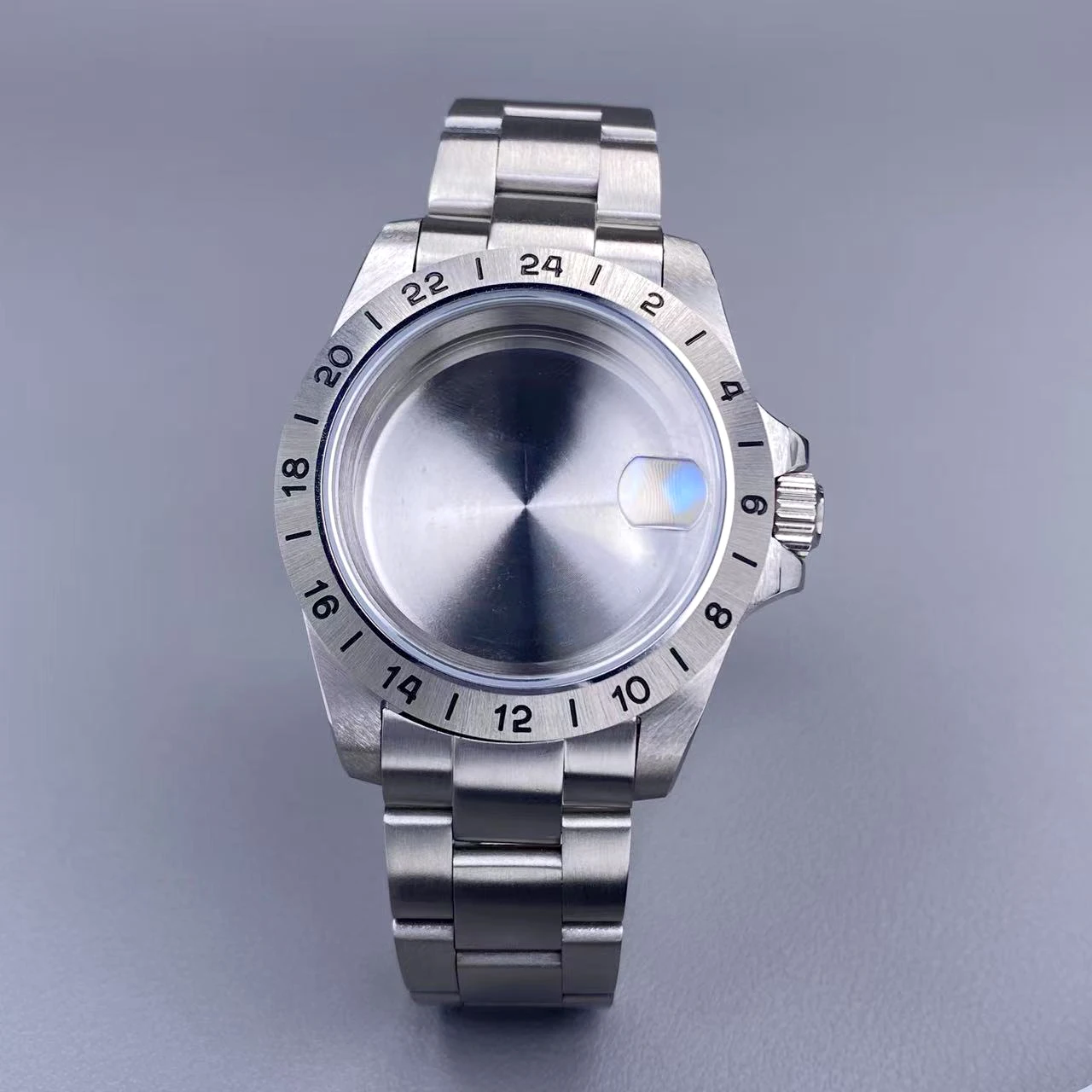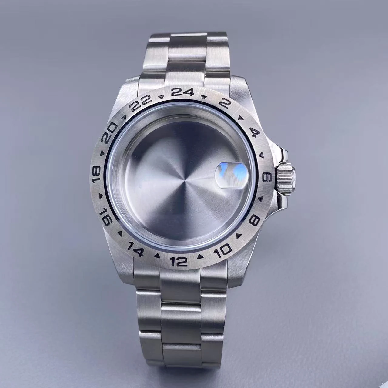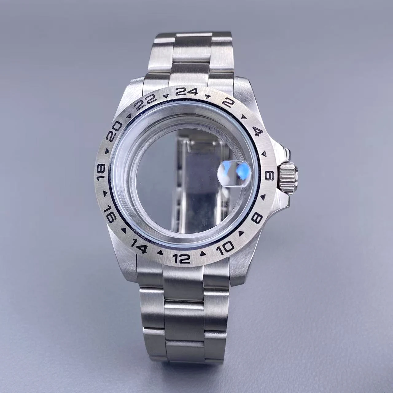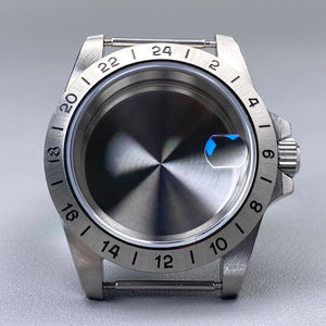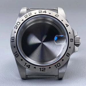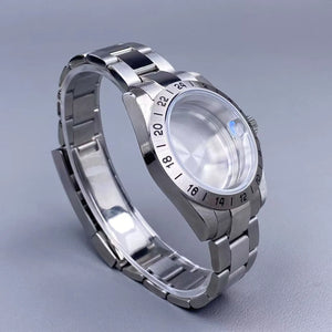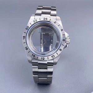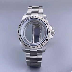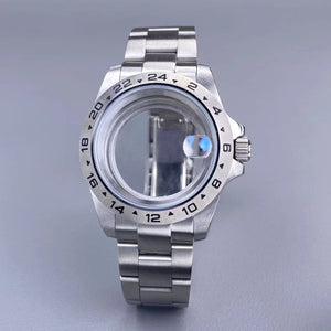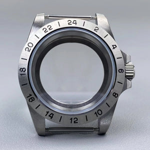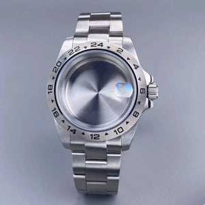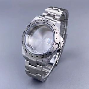 39mm EXP 24 Hour GMT Watch Case Fixed Bezel Sapphire for NH35/NH36 Movement Frosted Steel Strip