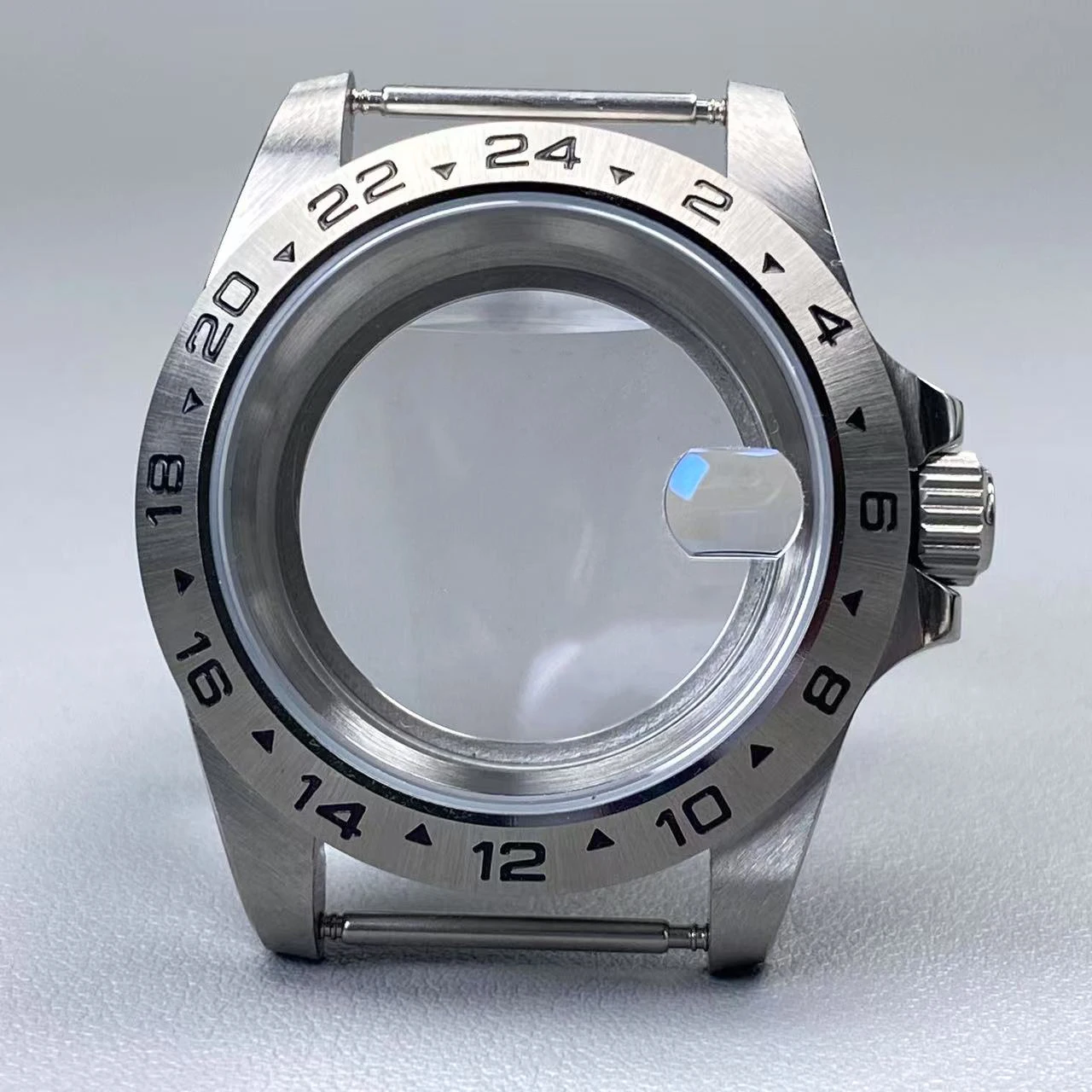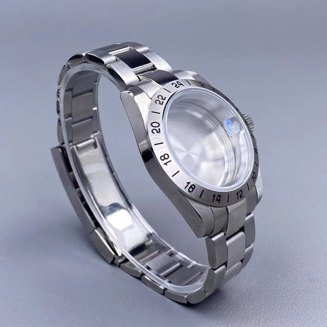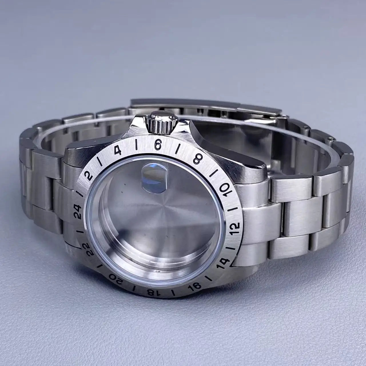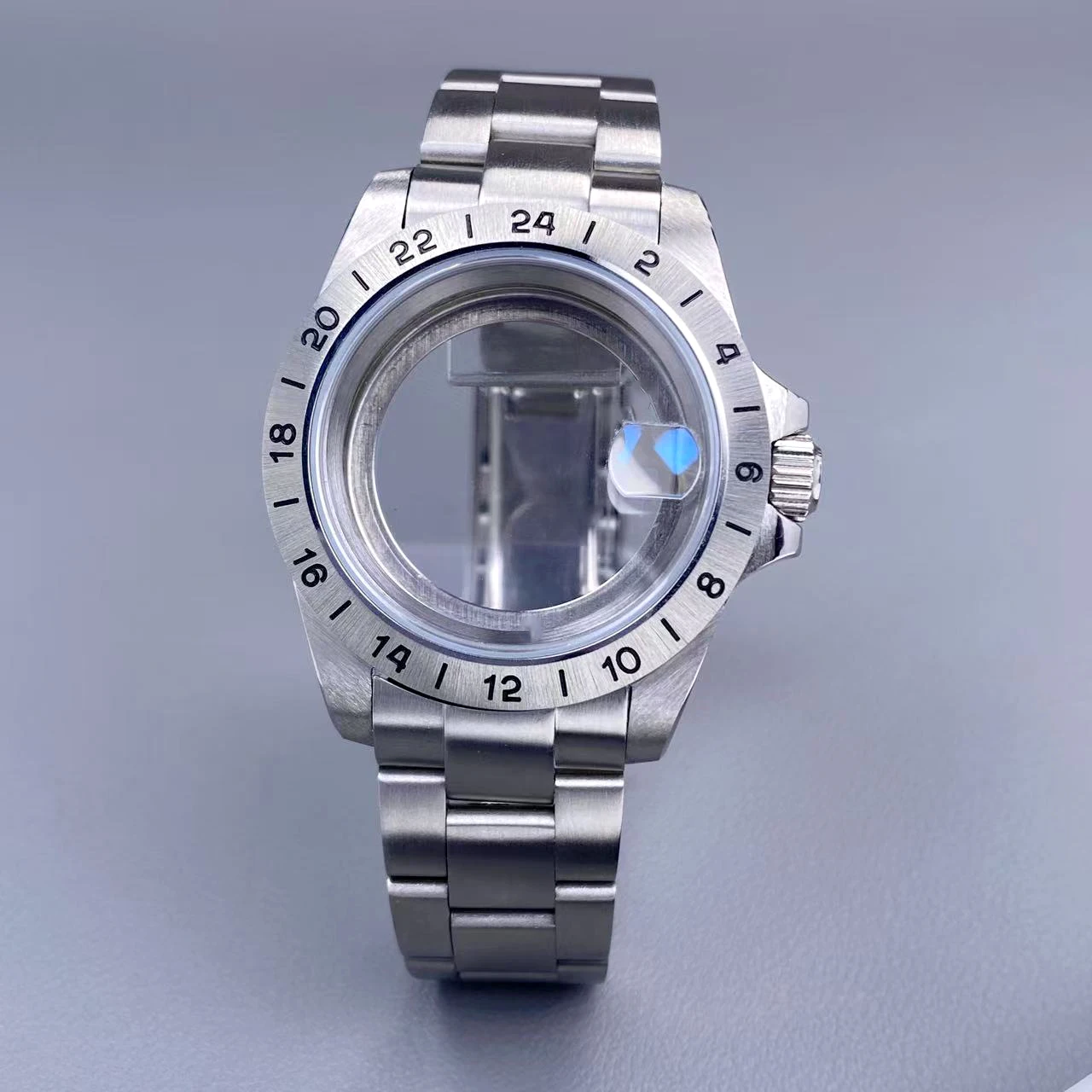 39mm EXP 24 Hour GMT Watch Case Fixed Bezel Sapphire for NH35/NH36 Movement Frosted Steel Strip