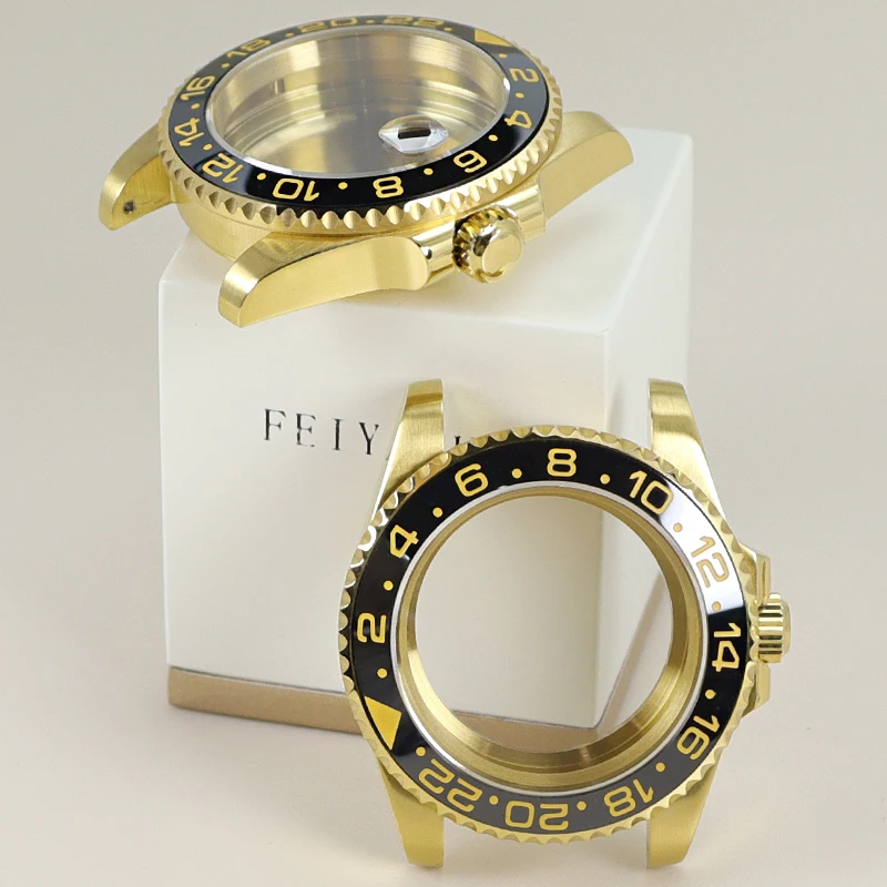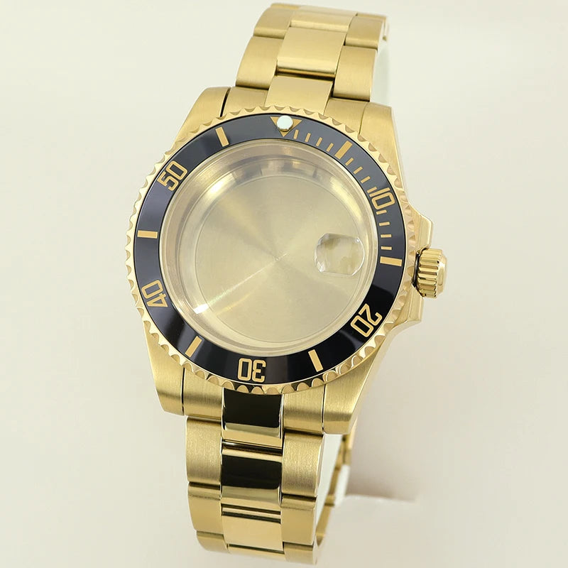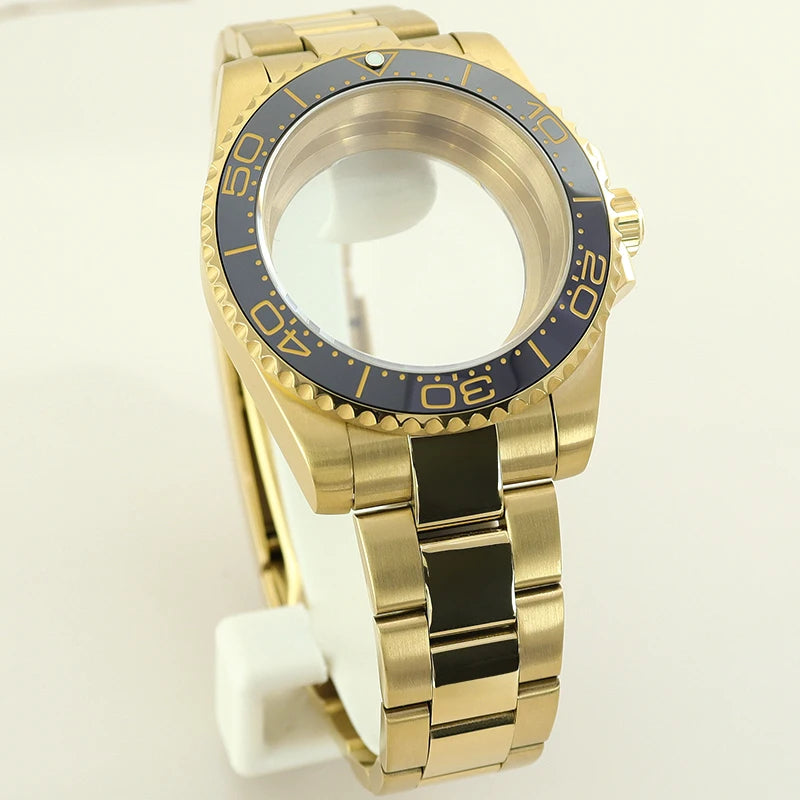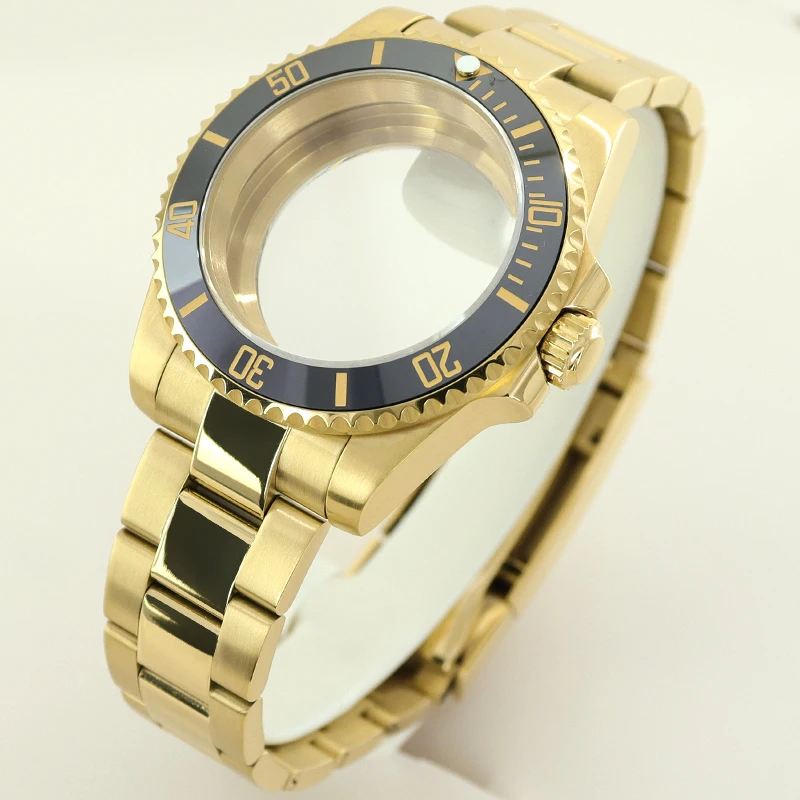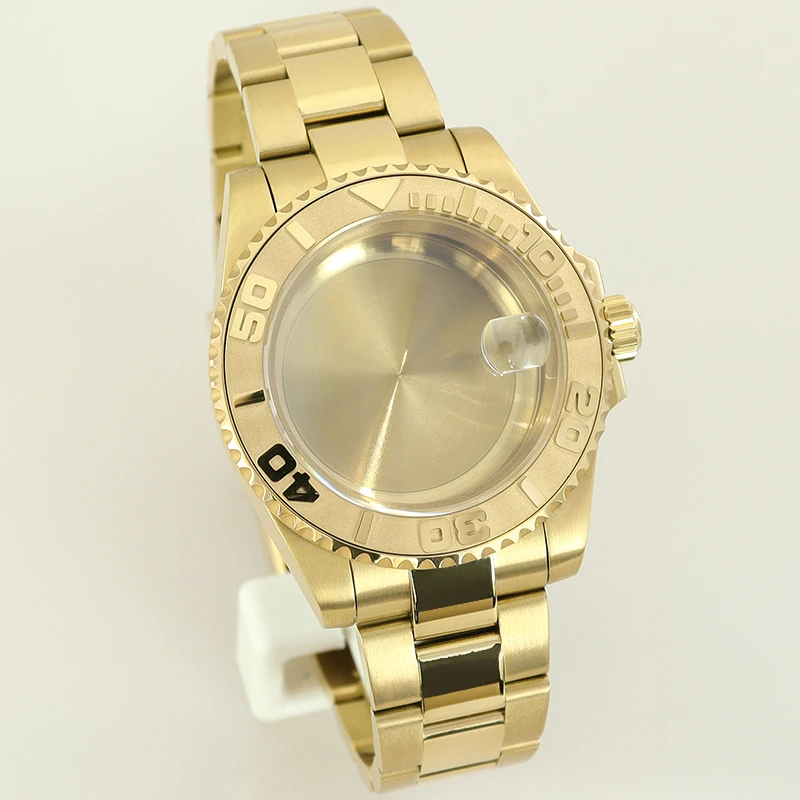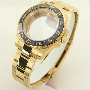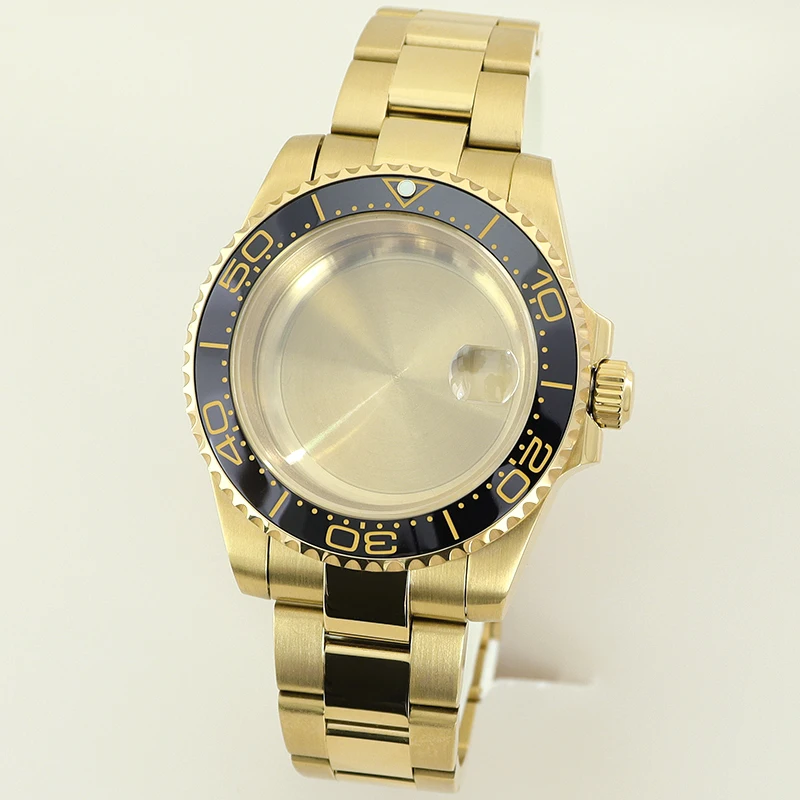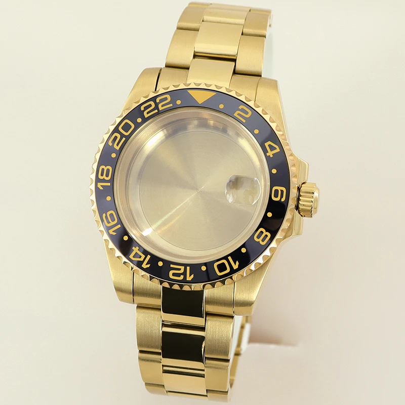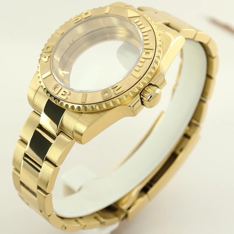 40MM PVD Gold Submariner Watch Case GMT Yacht Master Polish Strap Sapphire Glass For NH35 NH36 NH34 NH38 Miyota 8215 Eta 2824 GMT SUB Yacht 20ATM waterproof
