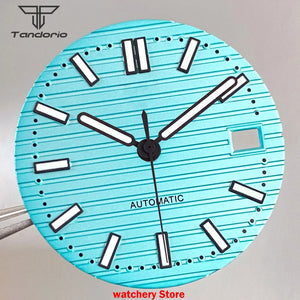 28.5mm Dial single/no calendar watch blue-green/green luminous dial hands fit for N H35/E2815/E2836 movement watch accessories