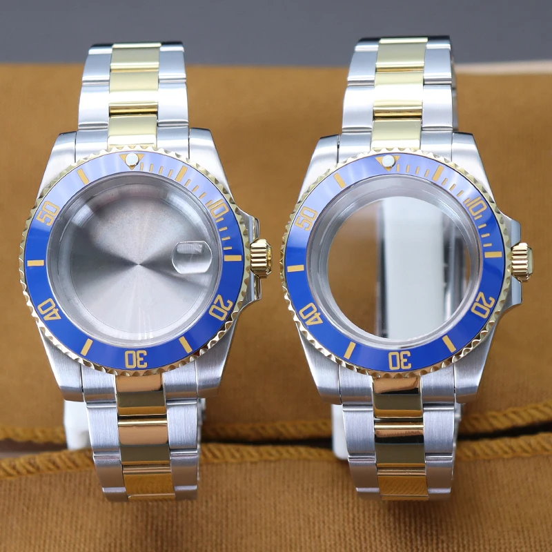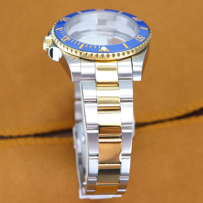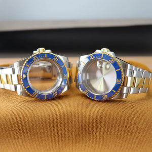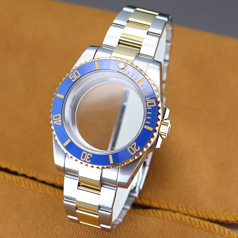 40mm Two Tone Sub / GMT Diver Watch Cases Bracelet Sapphire Glass For Seiko NH35 NH36 NH38 NH34 Miyota 8215 Eta2824 Movement 28.5mm Dial Submariner