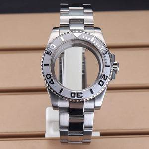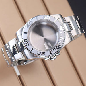 Premium Yacht-Master–style watch case kit crafted from solid 316L stainless steel. Designed for popular automatic movements, this complete kit includes bracelet and accessories, making it ideal for custom builds and mod projects with a clean, professional finish.