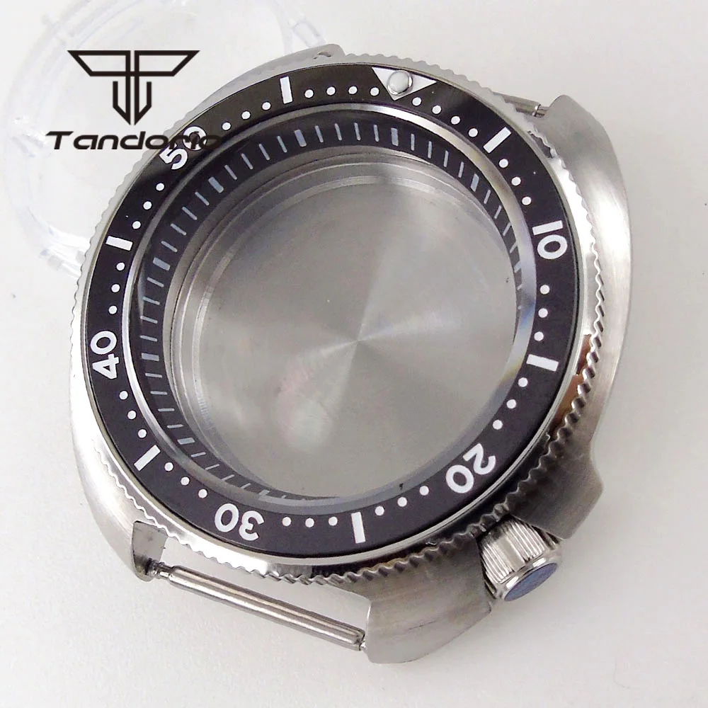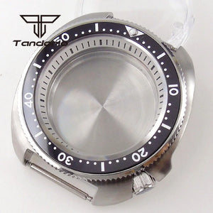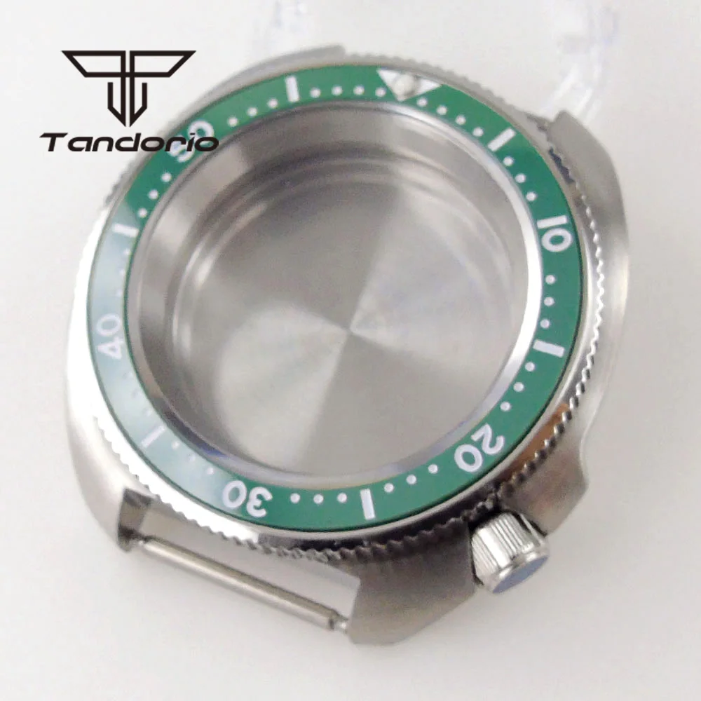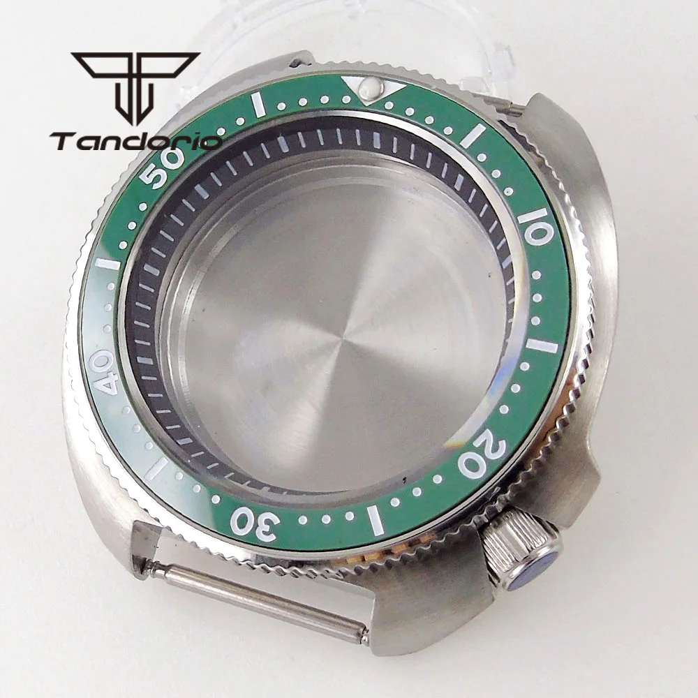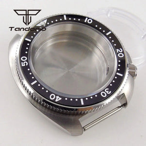 44mm Captain Willard Watch Case Stainless Steel Brushed Turtle Abalone 6105 Watch Case 20BAR Sapphire Glass Ceramic Rotating Bezel Fit NH34 NH35 NH36 ETA2824 PT5000 Movt