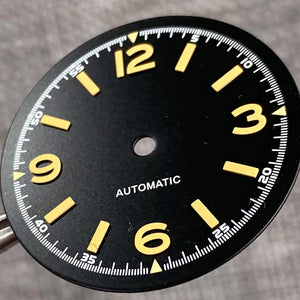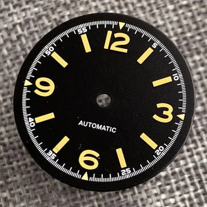 Dial Size:29 mm diameter.Dial : black dial , luminous markersHands size: 8.5mm x 12.5mm x 12.5mm ( All measure from the center of the hole to the end )