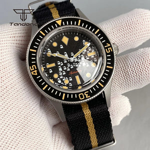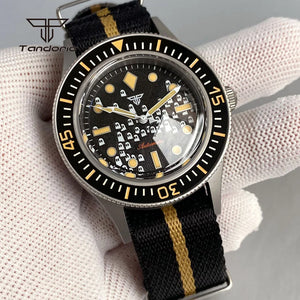 The 50-Fathoms Tandorio TD223M combines professional-grade diving capability with refined watchmaking. This 40mm timepiece features a robust Miyota 8215 automatic movement, delivering reliable precision for underwater exploration and everyday wear. The domed sapphire crystal provides scratch resistance and enhanced legibility, while the 20ATM water resistance rating ensures dependable performance at depths up to 200 meters. Luminous hands and indices guarantee visibility in low-light conditions, and the striking green dial adds distinctive character to your collection. Built for divers who demand both functionality and aesthetic appeal.
