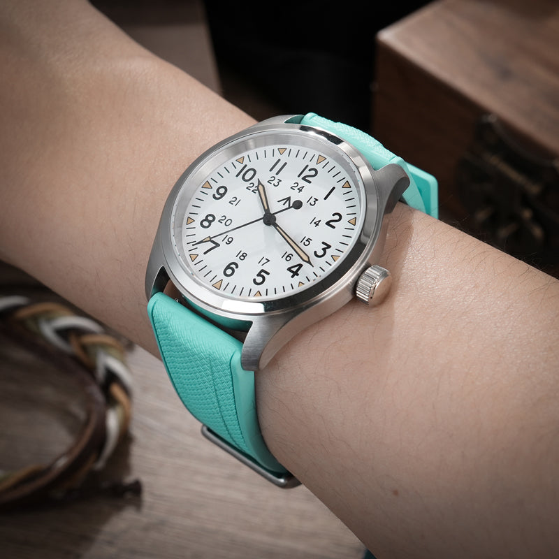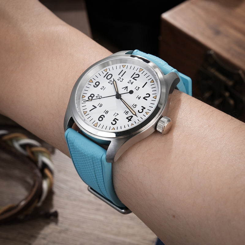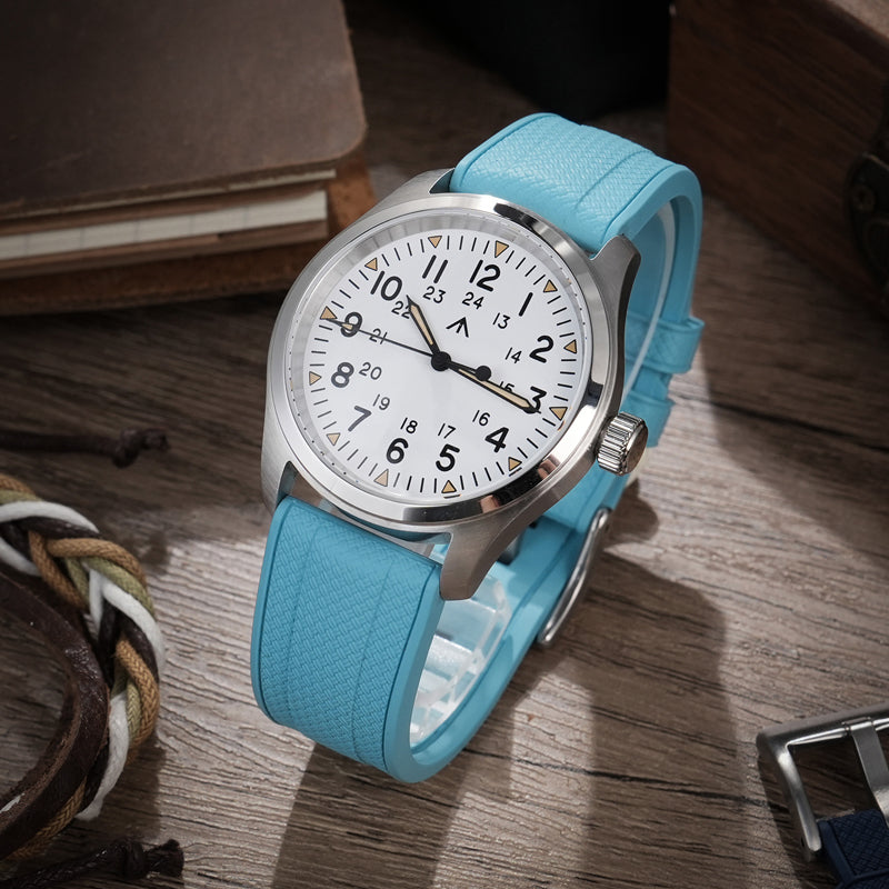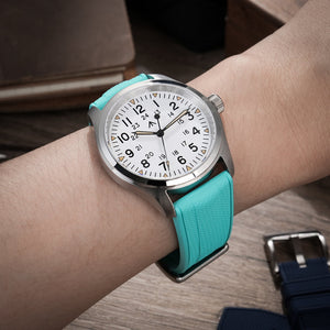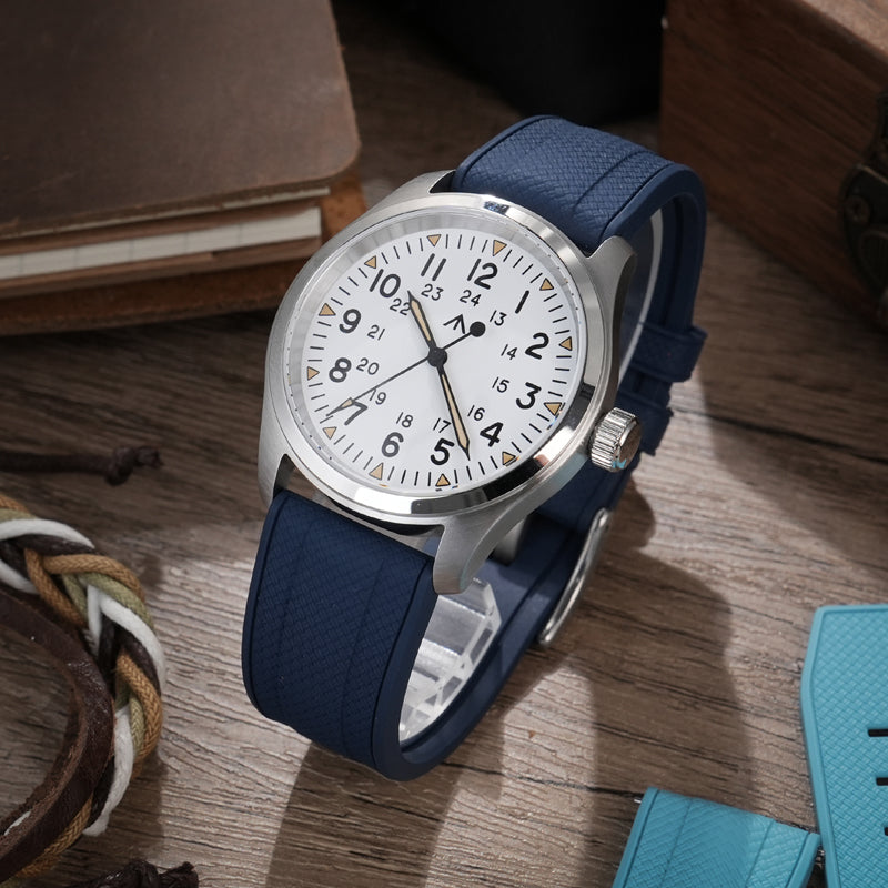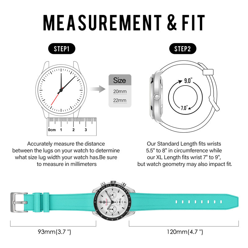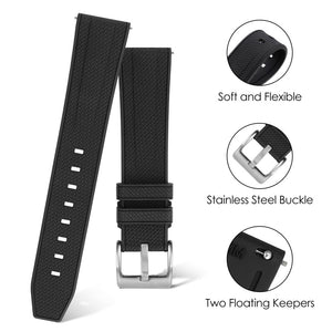 Black Blue FKM Rubber Watch band Herringbone Textured Watch Strap20mm 22mm