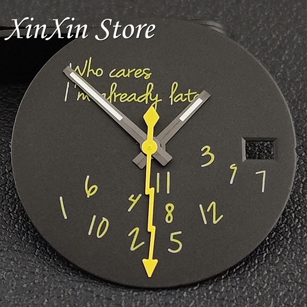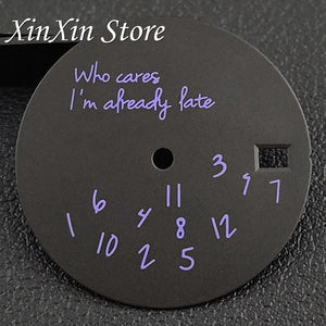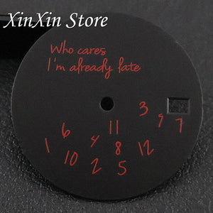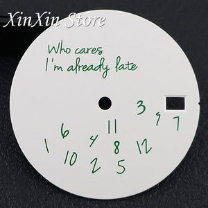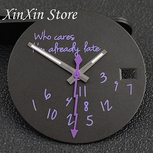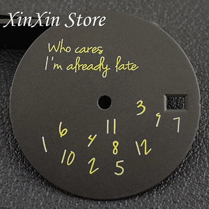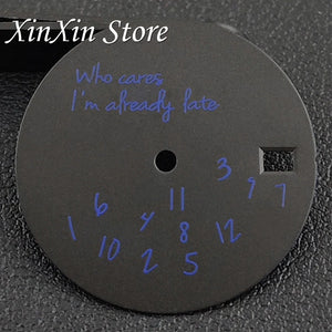 Black NH35 28.5mm Watch Dial Who Cares With Lightning Second Hands For NH35 4R35 Movement Who Cares Lt's Already Late Replace Watch Dial