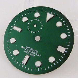 28.5mm Sunray Watch Dial Stripe Nails Green Luminous Font Modified Watch Accessories Suitable for NH35/8215/2836 Movement
