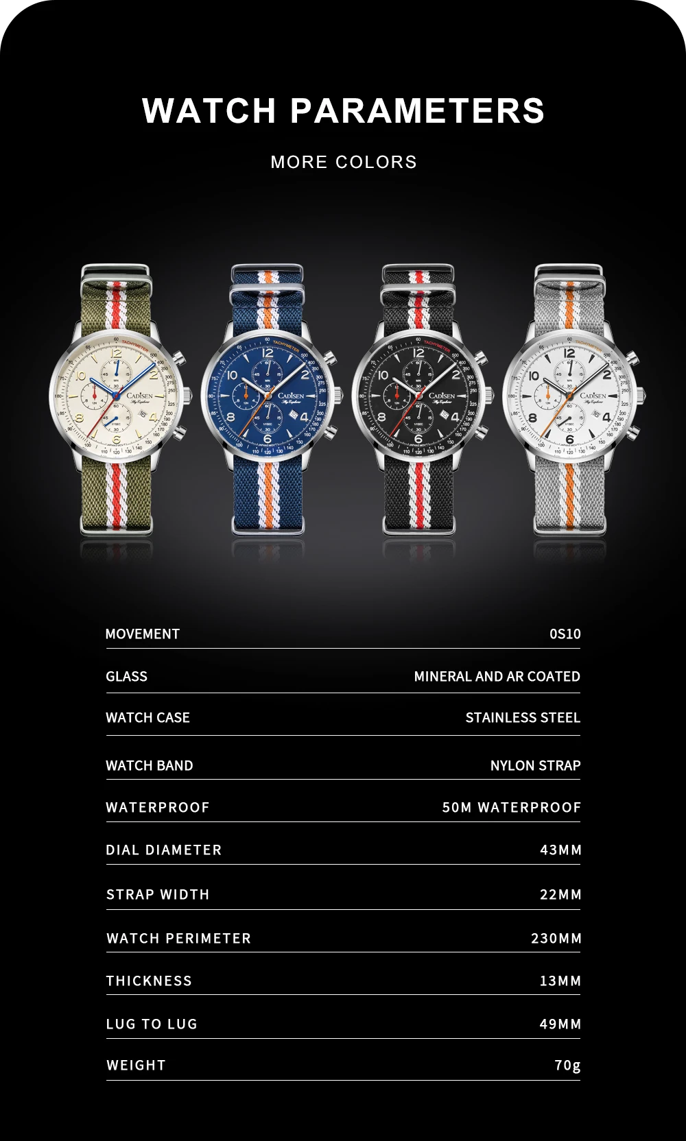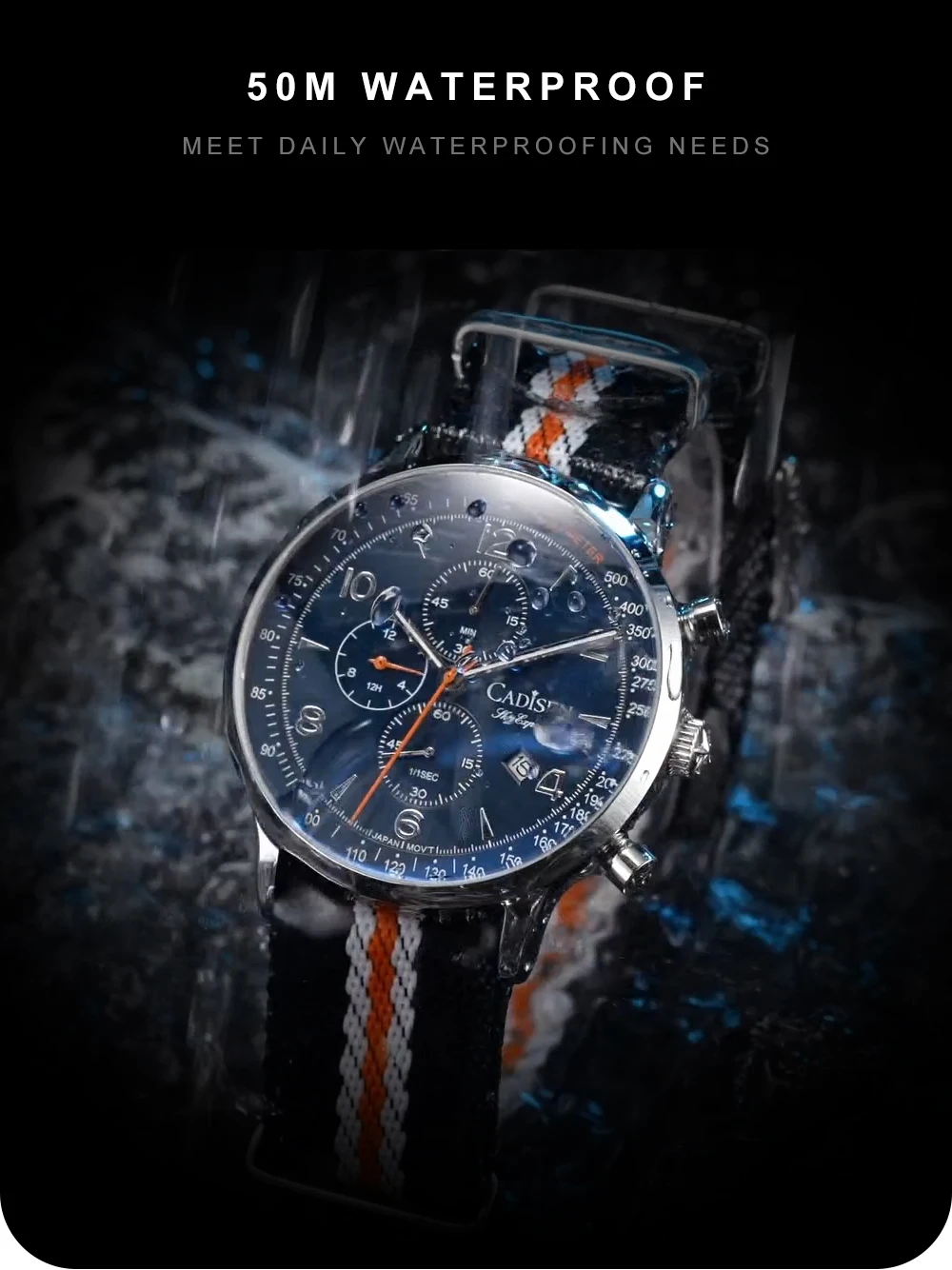 • Chronograph Stopwatch Feature :Japan MIYOTA 0S10 quartz movement Allows you to measure elapsed time accurately, making it useful for sports and other activities.