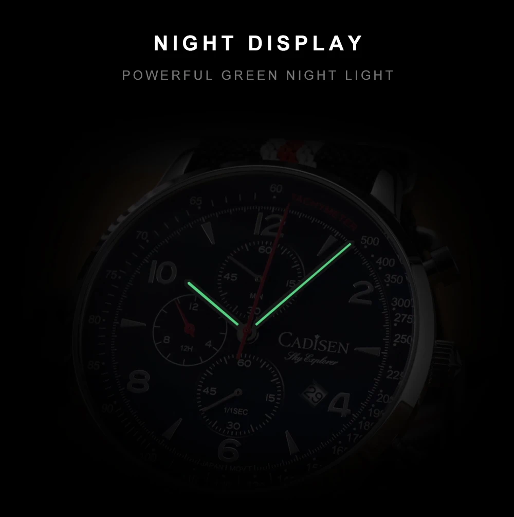 CADISEN C7067 Chronograph MIYOTA 0S10 Quartz Watch AR Mirror 5bar