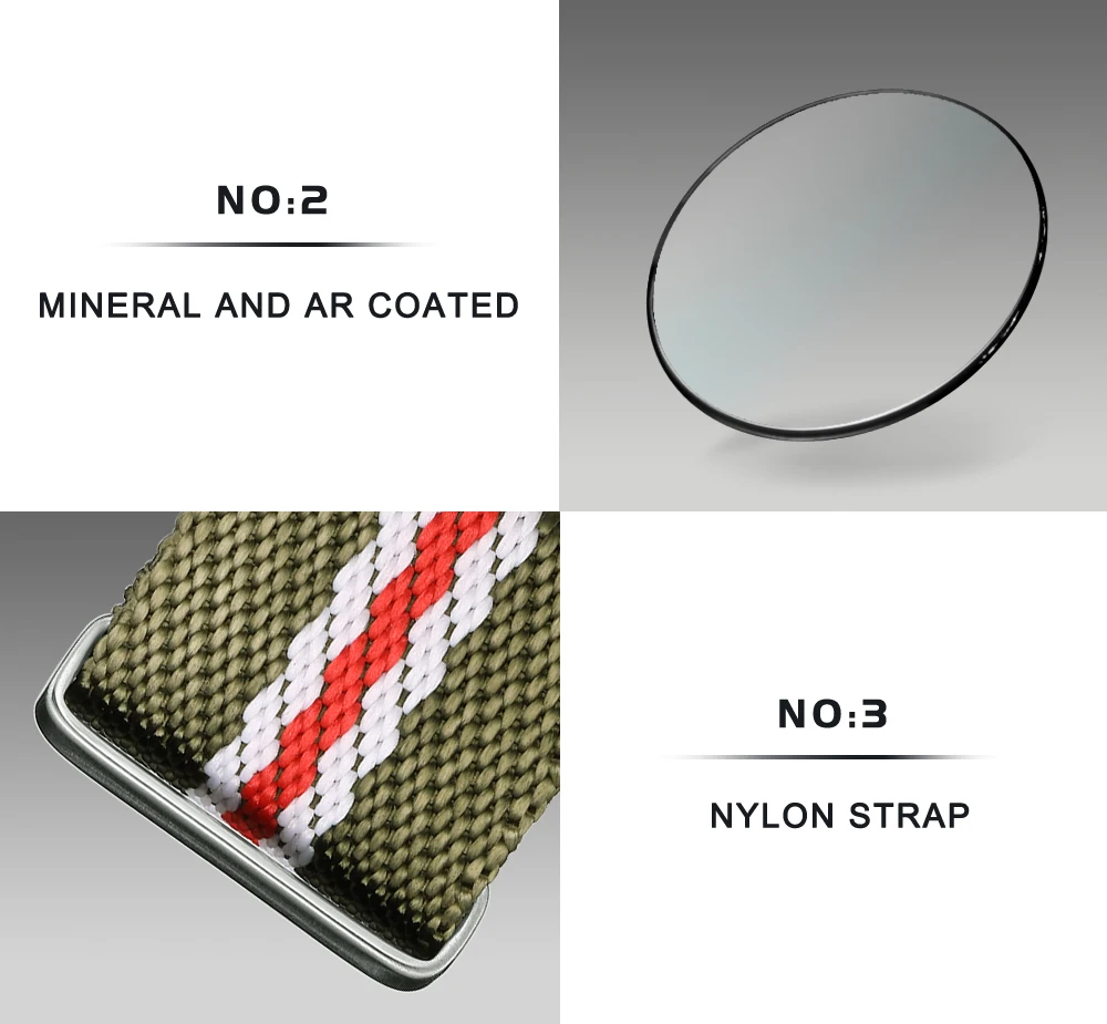 • AR COATED Mineral Crystal Dial Window Material Type :Scratch-resistant and durable material that ensures the watch face remains clear and easy to read.