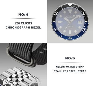 CADISEN C8220 Diver Watch New Luminous Men Mechanical Wristwatches Ceramic Bezel Sapphire Glass NYLON Band Automatic Watch Men Relogio Masculino