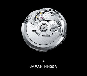 Powered by the Japan Miyota 8215 automatic movement, it offers hacking seconds, 21 jewels, and a 42-hour power reserve, ensuring accurate timekeeping.