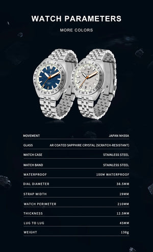 Cadisen C8231 Diver Watch Meteorite Dial 38.5MM 10Bar Miyota 8215 Automatic AR Sapphire