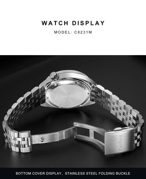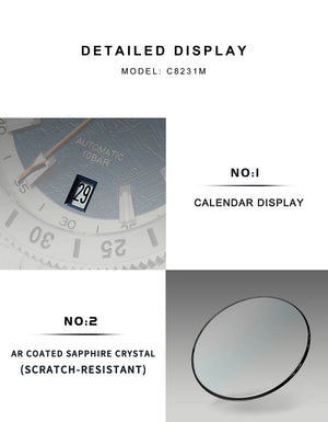Experience luxury and precision with the NEW 2025 CADISEN Cadisen C8231 Automatic Mechanical Watch. Crafted with premium stainless steel and equipped with a Japan Miyota 8215 movement, this timepiece offers precise timekeeping without manual winding. Its 10ATM water resistance and scratch-resistant AR-coated sapphire crystal make it suitable for everyday adventures. Luminous hands and indexes provide enhanced visibility in low light conditions. Elevate your style with the Cadisen C8231 Automatic Mechanical Watch.