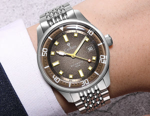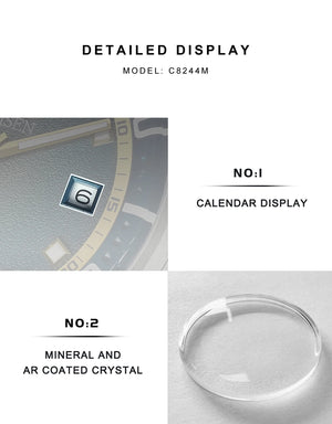 The CADISEN C8244 blends classic style with modern precision. Powered by the reliable Japan MIYOTA 8215 automatic movement, it ensures accurate timekeeping with both self-winding and hand-wind options. Its 316L stainless steel case and bracelet offer exceptional durability, while the sapphire crystal provides scratch resistance and clarity. Luminous hands enhance readability in low light, and a 10Bar water resistance makes it perfect for daily wear and light water activities. With its timeless round design and refined craftsmanship, the C8244 is an elegant choice for fashion-conscious watch enthusiasts.