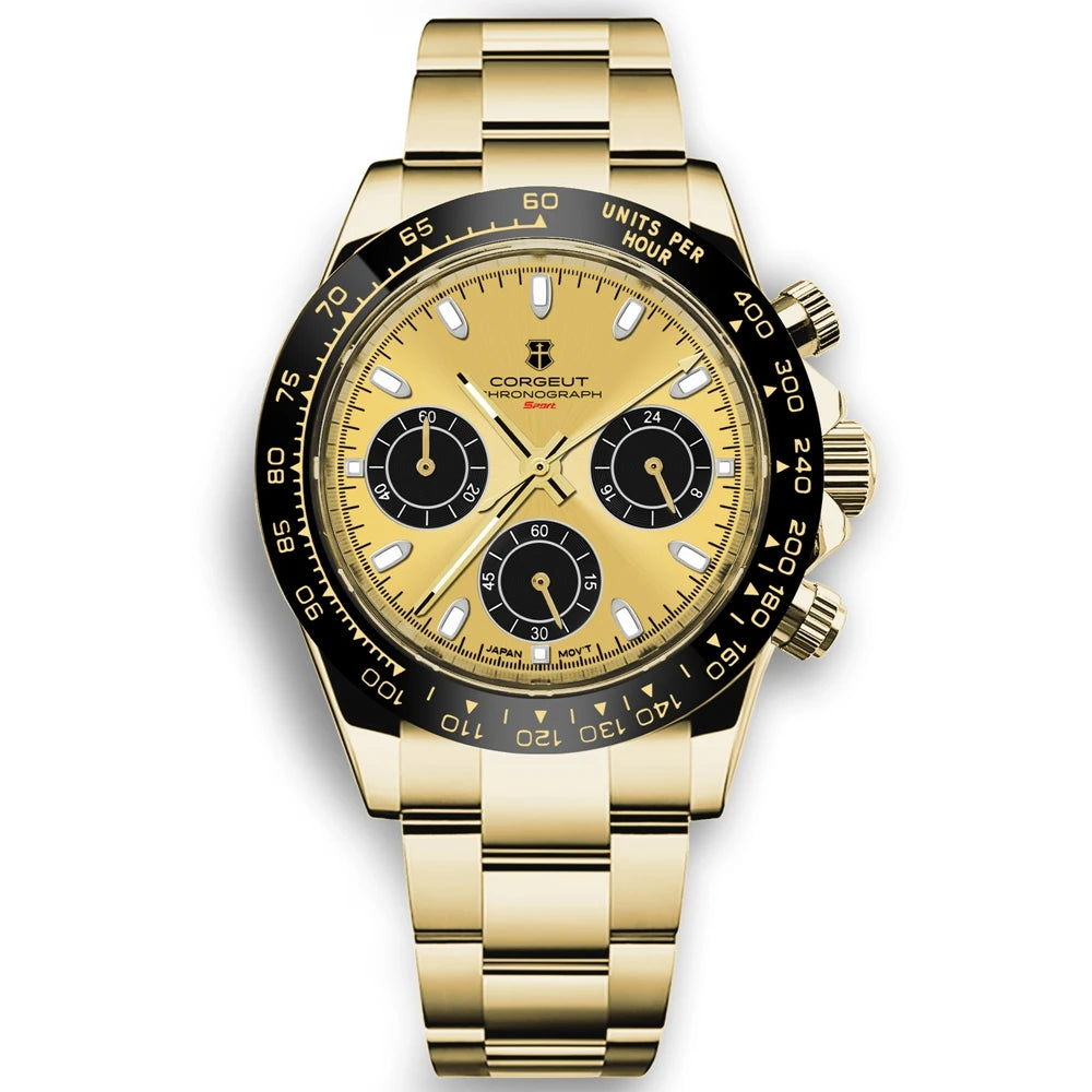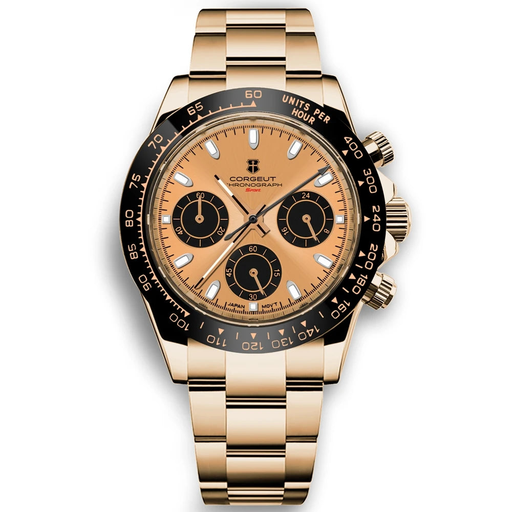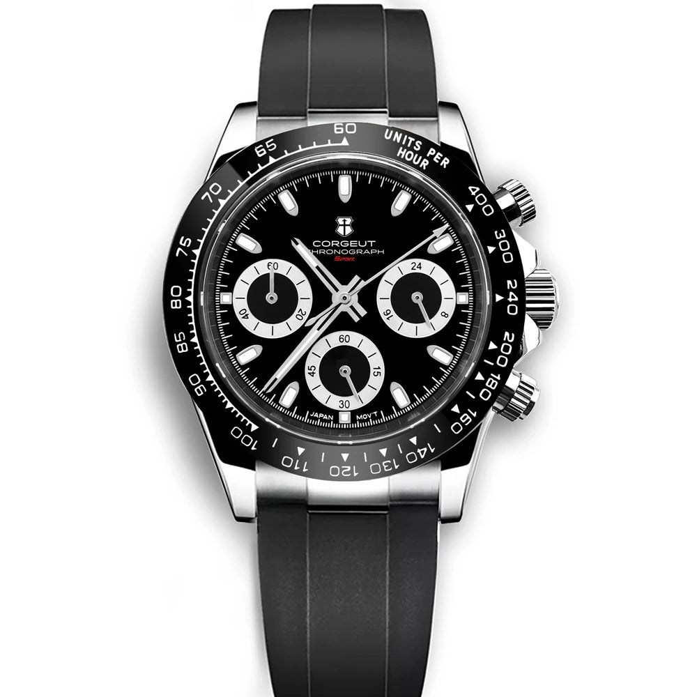 Corgeut 2069 Chronograph watch Panda Daytona 24 hours VK63 Quartz Hardlex 10Bar 39MM
