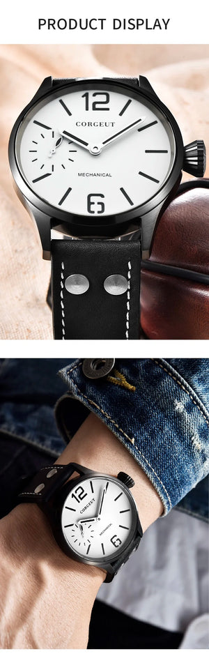 Corgeut 6025 pilot ST3600 Manual Mechanical sub second Sapphire Mirror 44mm 5ATM Glass Back