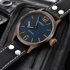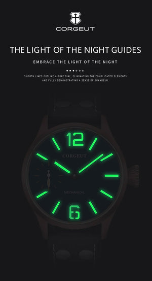 The Corgeut 6025 pilot watch features a precise ST3600 manual mechanical movement with a sub-second dial, ensuring accurate timekeeping. Its 44mm case is protected by a durable sapphire crystal mirror, offering excellent scratch resistance. The watch is water-resistant up to 5ATM, suitable for everyday wear. A transparent glass back reveals the intricate mechanics, appealing to enthusiasts who appreciate craftsmanship and engineering. This timepiece combines robust functionality with classic pilot watch aesthetics for a reliable and stylish accessory.