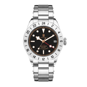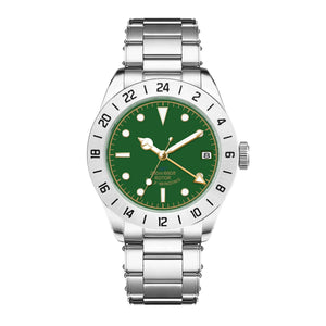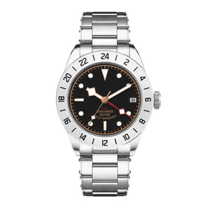The Corgeut NH34A GMT is a versatile and stylish timepiece designed for travelers and watch enthusiasts. Crafted from durable 316L stainless steel, it features a luminous dial, GMT functionality for dual-time tracking, and a robust water resistance of up to 200 meters. A flat sapphire crystal ensures scratch resistance, while the stainless steel bracelet with a folding clasp provides a secure fit. With its sleek 39mm case and dependable NH34A automatic movement, this watch is perfect for everyday wear and special occasions. Custom logo engraving is available for a personalized touch.