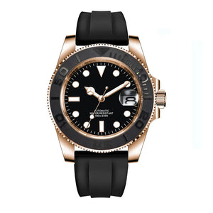 The Corgeut Yacht Watch CG3002 is an elegant automatic dress watch that offers both sophistication and precision. Powered by the reliable NH35, Miyota, or SEAGULL automatic movement, this timepiece features a classic black dial with a date window at 3 o'clock. Crafted with a solid 316L stainless steel case, sapphire crystal, and a durable rubber strap, this watch is perfect for formal occasions and daily wear. With a complete calendar function and 10ATM water resistance, it's as functional as it is stylish.
