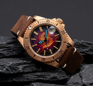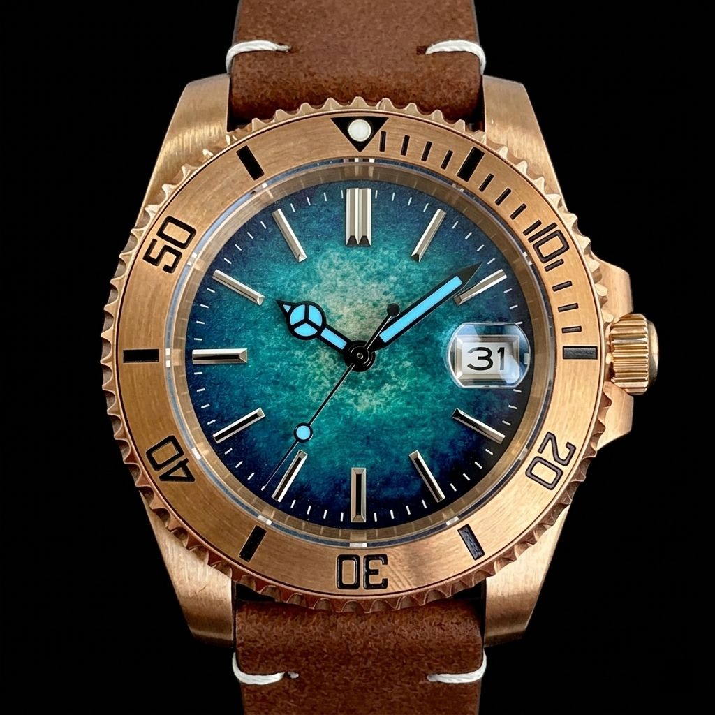 Embrace vintage charm with the Tandorio TD232K CuSn8 Solid Bronze Submariner Dive Watch, a rugged timepiece that develops a unique patina over time. Powered by a 24-jewel NH35 automatic movement, it features a unidirectional 120-click solid bronze bezel, sapphire crystal, and 200m water resistance. The green luminous dial ensures excellent legibility. Custom logo personalization is available—contact us before ordering with your artwork.