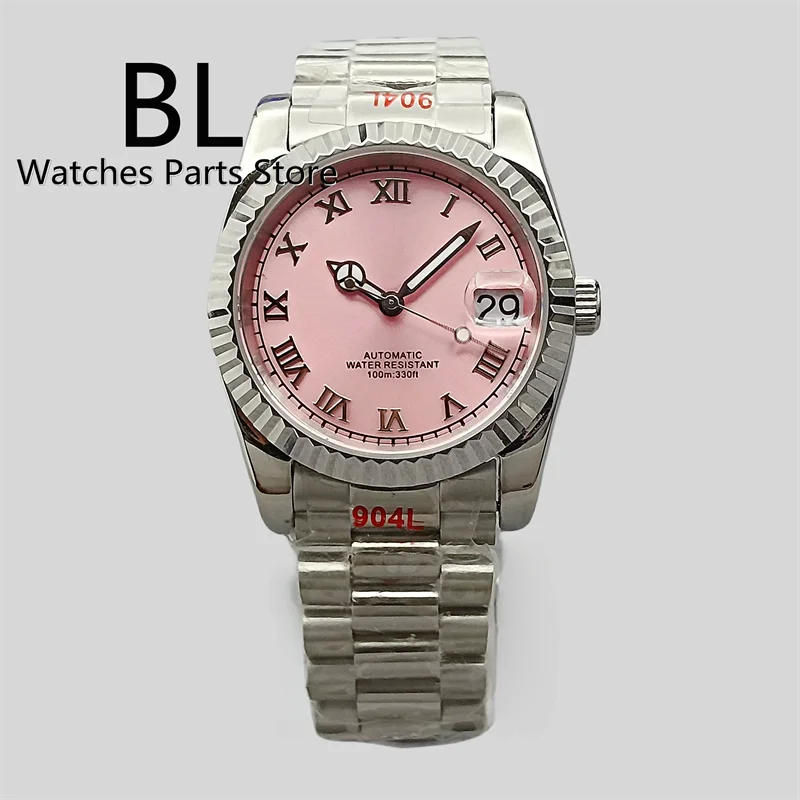 DateJust Dress Watch BLIGER BL001 36mm39mmPink Dial NH35A Automatic 904 Stainless Steel Fluted Bezel Sapphire Diamond Roman Marks