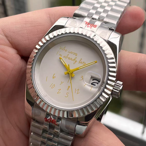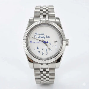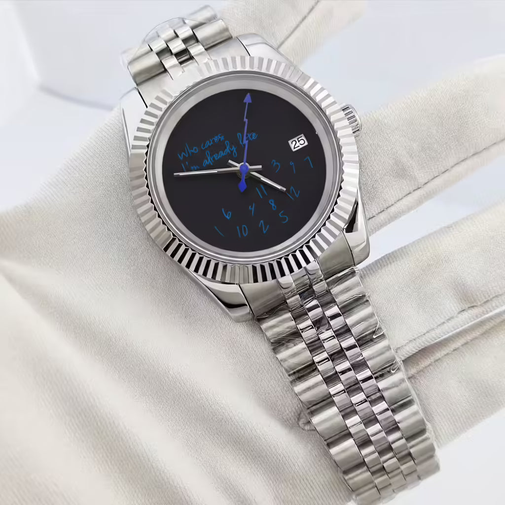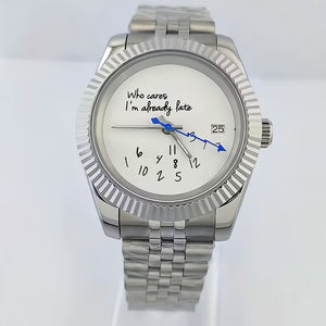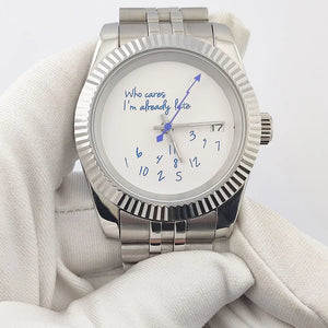 DateJust NH35 watch "Who Cares I'm already Late" dial customized logo 39mm/36mm Glass Back Sapphire 10bar