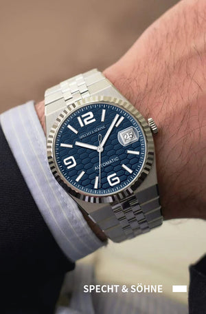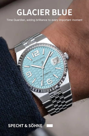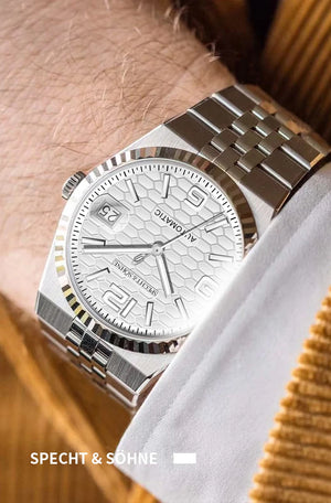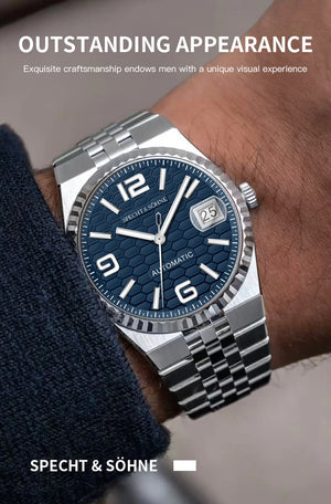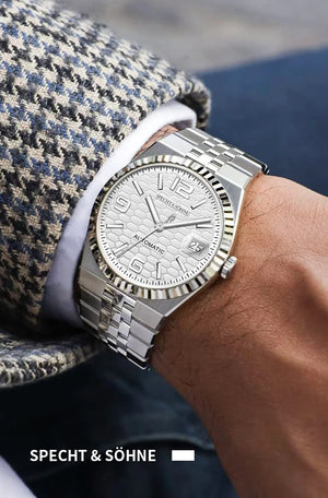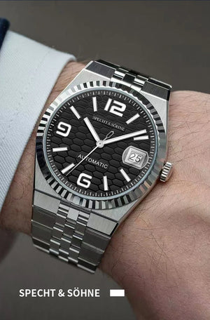Designed for a balanced wrist presence, this 37mm DateJust Watch Specht & Söhne automatic watch wears larger thanks to its thin bezel and 30.5mm dial, offering a refined yet sporty look. Ideal for 15.5–19cm wrists, it combines precision Japanese mechanics with premium materials for everyday luxury.