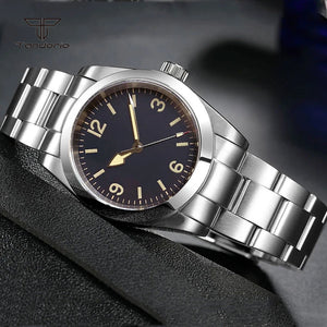 Explore with confidence wearing the Tandorio TD110Z Automatic, an Explorer-style timepiece available in 36mm or 39mm. Powered by your choice of Japan NH35,Miyota 8215 or PT5000 automatic movements, it features a sapphire crystal, green luminous dial, and a glide lock clasp for on-the-fly adjustments. The screw-down crown ensures reliability, making it perfect for daily adventures.
