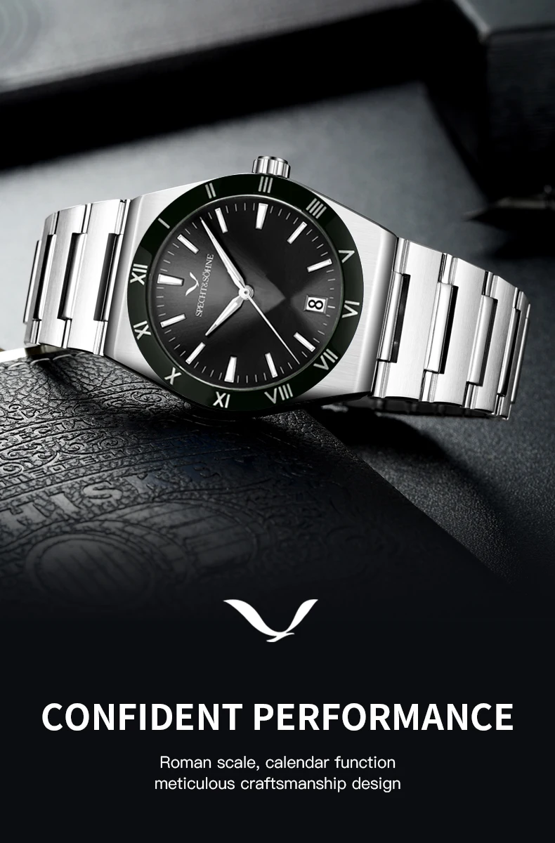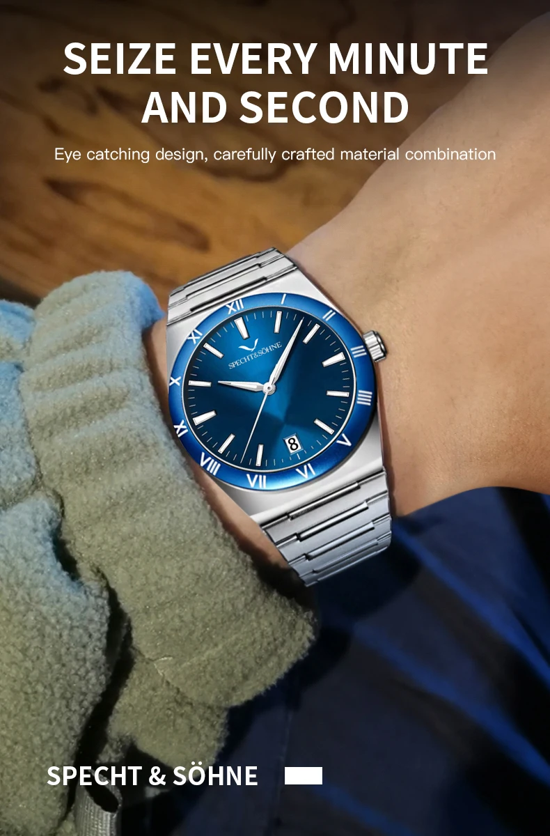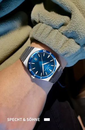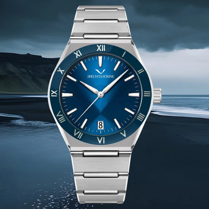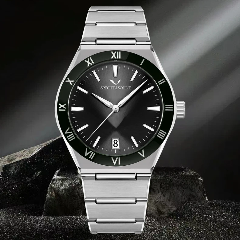 Modern Luxury Style: Elegant Specht & Söhne men’s quartz diver-style watch crafted with a 316L stainless steel case, sapphire crystal, and reliable Japan quartz movement (TMI2115). Clean design with daily-wear durability.