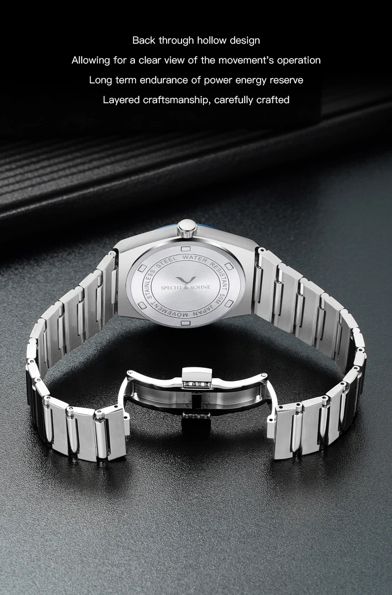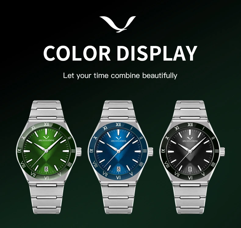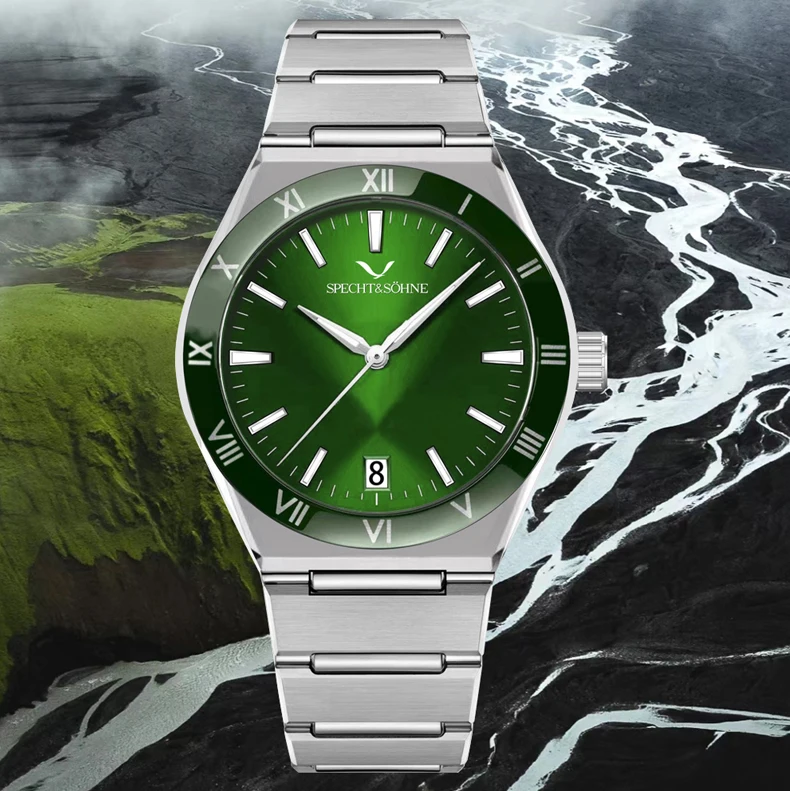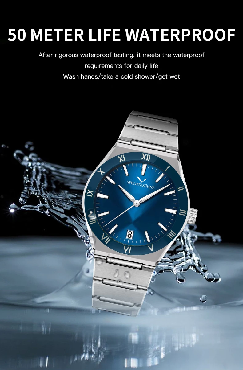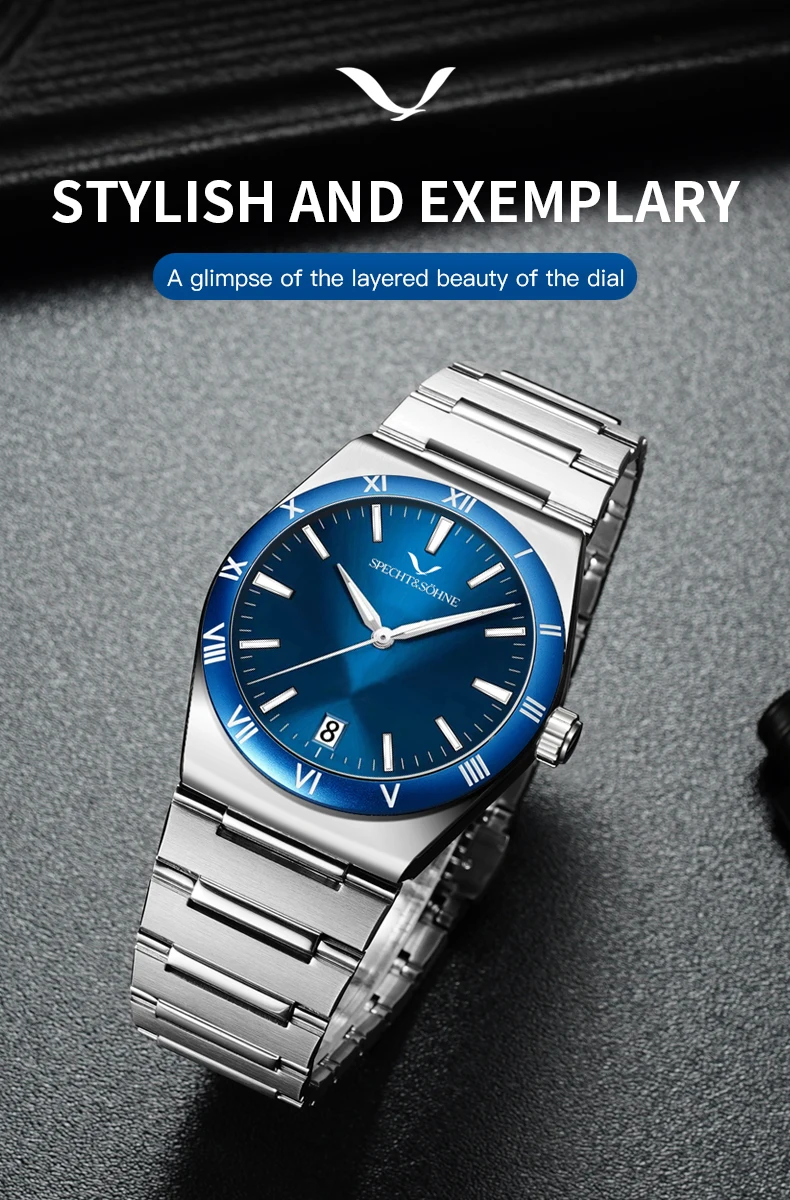 Modern Luxury Style: Elegant Specht & Söhne men’s quartz diver-style watch crafted with a 316L stainless steel case, sapphire crystal, and reliable Japan quartz movement (TMI2115). Clean design with daily-wear durability.