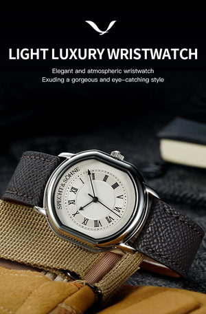 A refined vintage-inspired square watch combining modern precision with classic luxury styling. Powered by the Japan VH31 sweep-second quartz movement, this timepiece delivers smooth seconds motion, sapphire crystal durability, and elegant everyday wear for men.