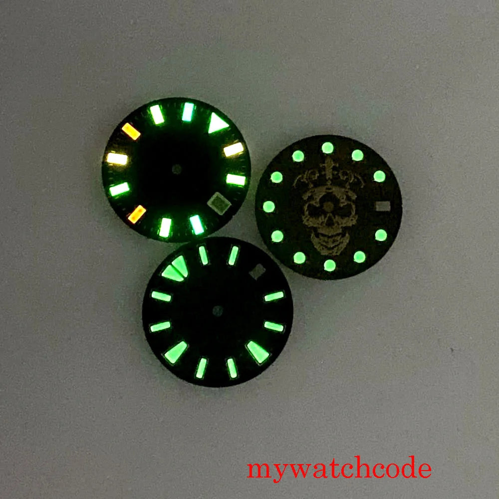 28.5mm Dial single/no calendar watch blue-green/green luminous dial hands fit for N H35/E2815/E2836 movement watch accessories