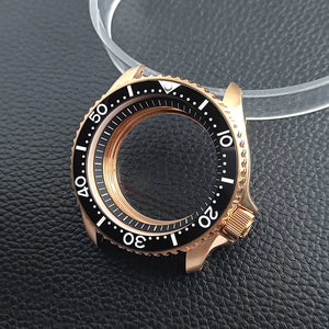 Premium gold SKX007 case finished with durable PVD coating, crafted from solid 316L stainless steel for professional watch mod builds. Designed to fit NH35 / NH36 movements and 28.5mm dials, this 42mm SKX007-style case features a plane sapphire crystal, screw-down crown, and wide bezel compatibility. Complete accessories included, ideal for custom Seiko mod and diver-style projects.